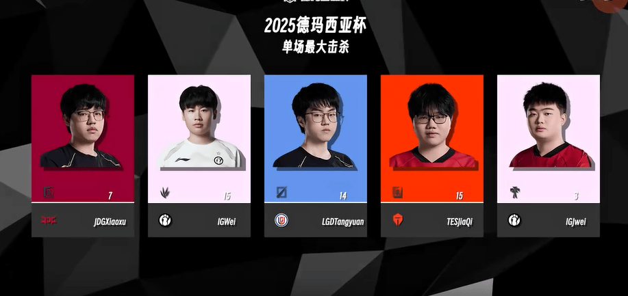 德杯各路数据:打野Wei多项第一;中路场均击杀汤圆第一
