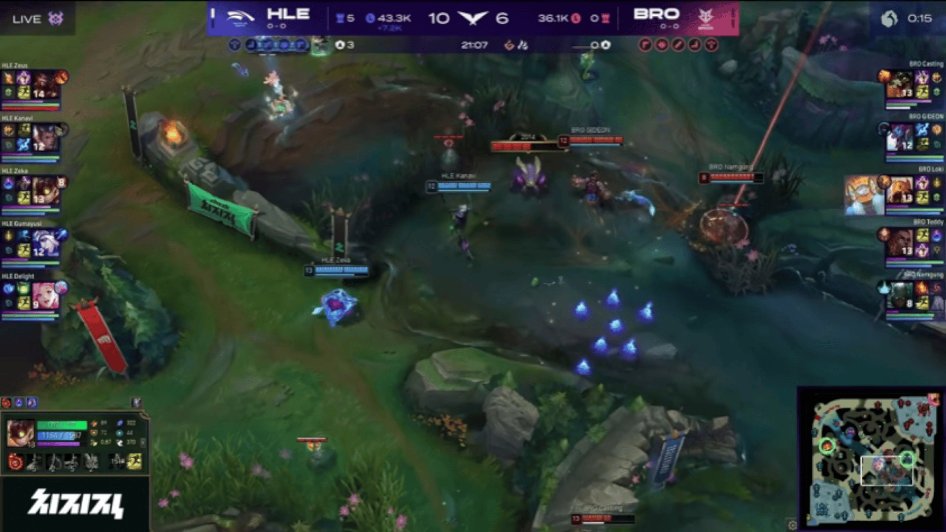 LCK:Teddy梅尔单杀Zeka炸弹人,BRO河道混战4换5团灭HLE