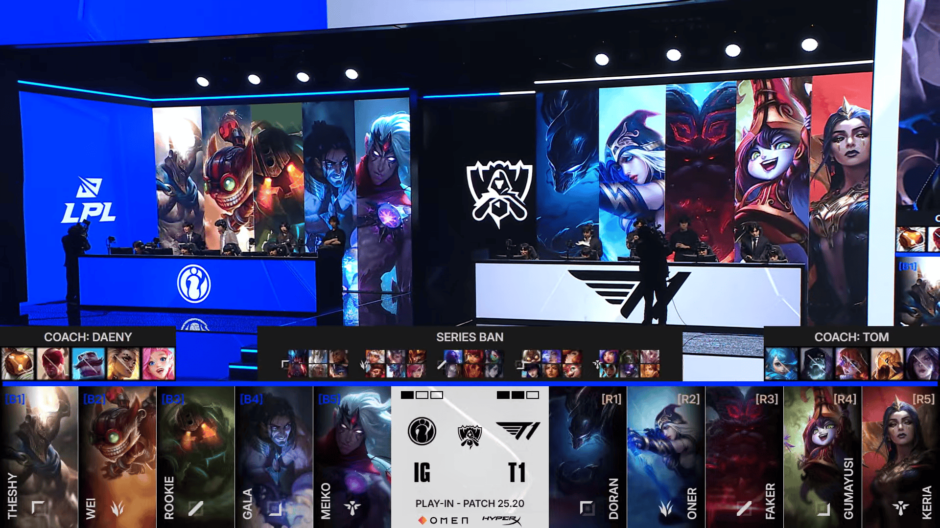 T1对阵IG第四局BP:TheShy奇招上单韦鲁斯;Faker末选妖姬