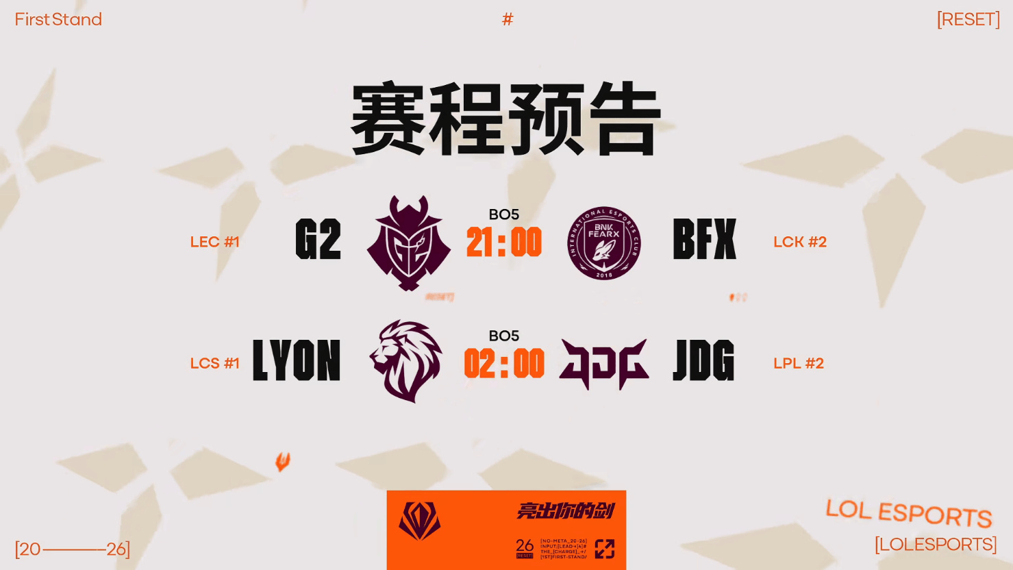 全球先锋赛小组赛DAY5虎扑墙:G2 vs BFX、LYON vs JDG