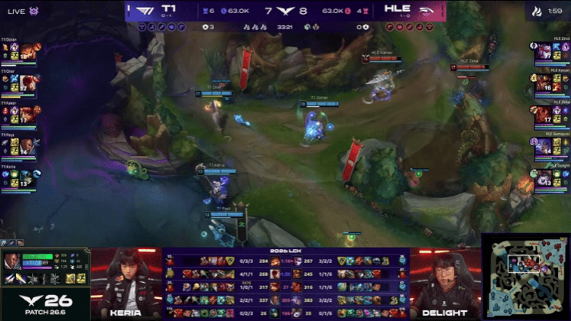 LCK:Zeka阿萝拉连续落单被抓,T1追击先后0换4大胜HLE