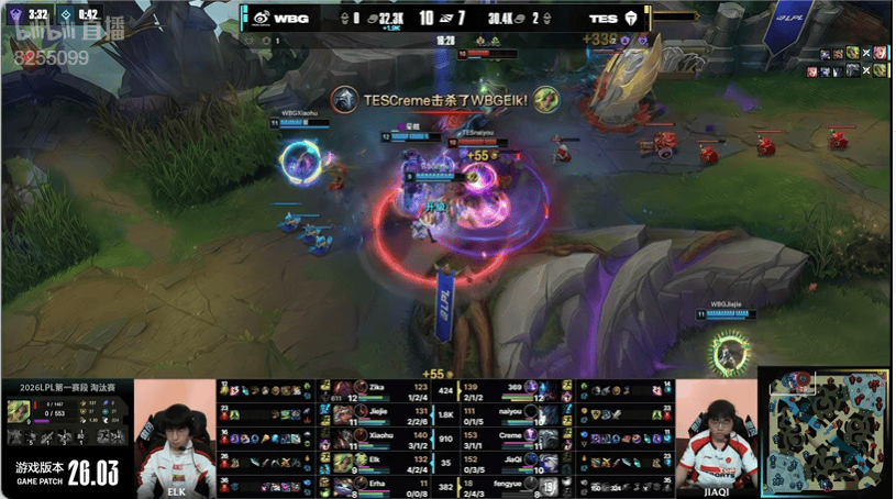 WBG对阵TES数据:小奶油输出964,Elk1026
