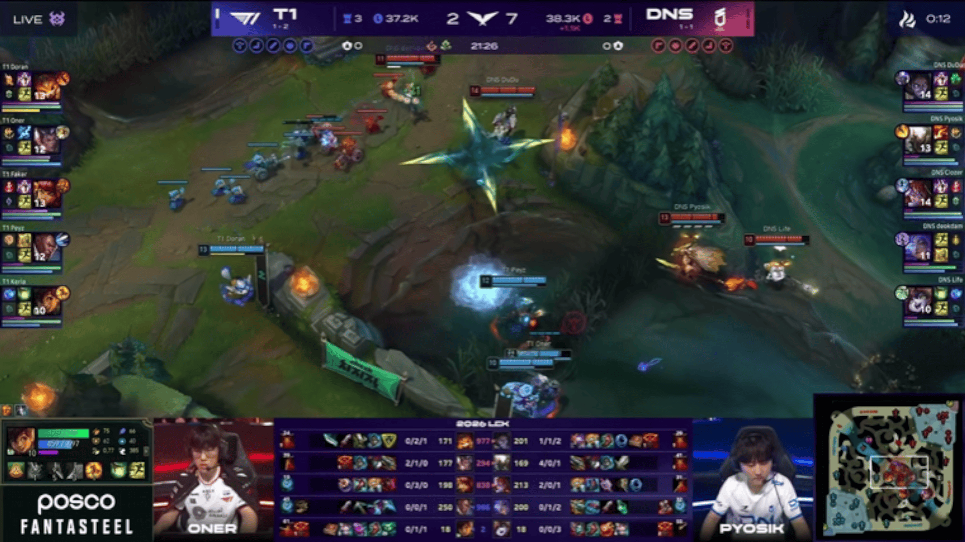 T1 1-0 DNS:Oner超神盲僧12/0强势发挥,T1首局轻取DNS