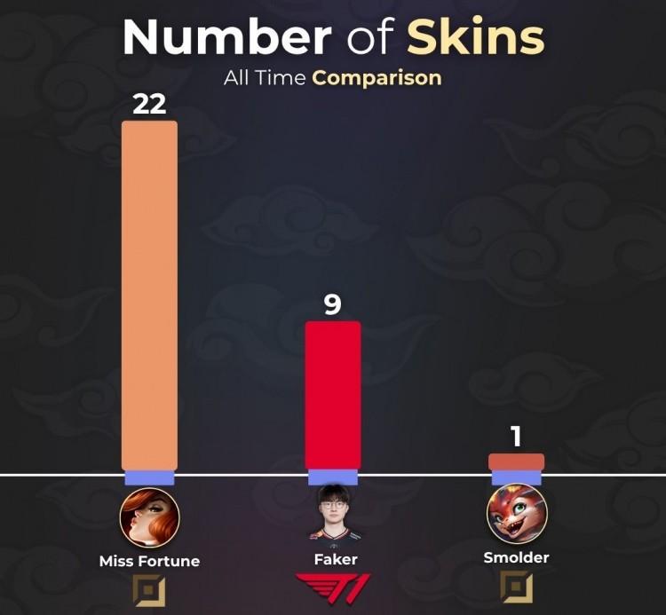 外媒统计趣味数据:Faker皮肤数量远超小火龙