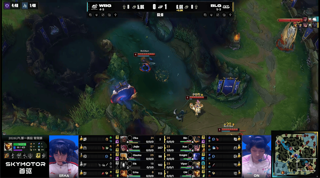 BLG 1-0 WBG:Xiaohu沙皇表现不佳,BLG巨大领先拿下首局