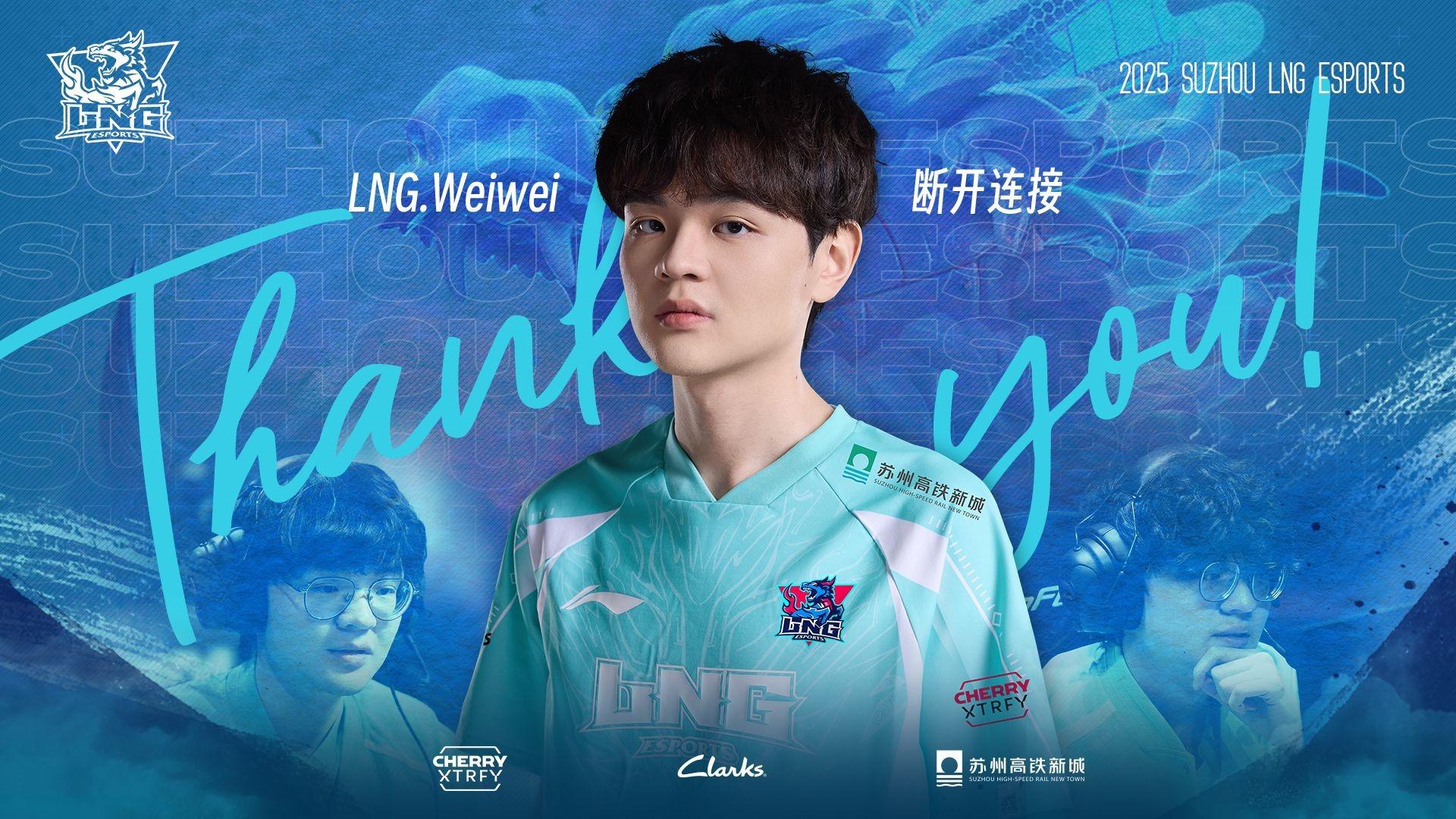 LNG发布人员变动公告:打野选手Weiwei正式离队