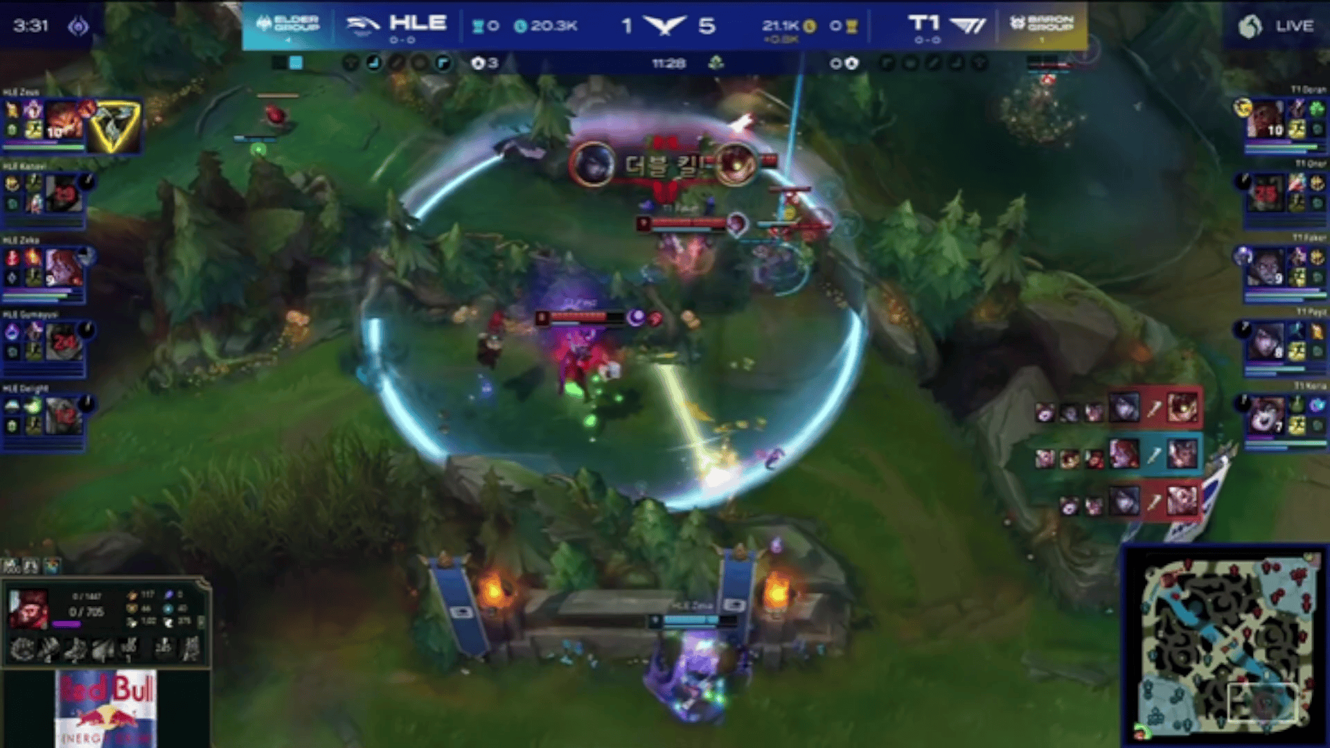 T1 vs HLE第三局集锦:Doran阿卡丽全场开秀,T1让一追二
