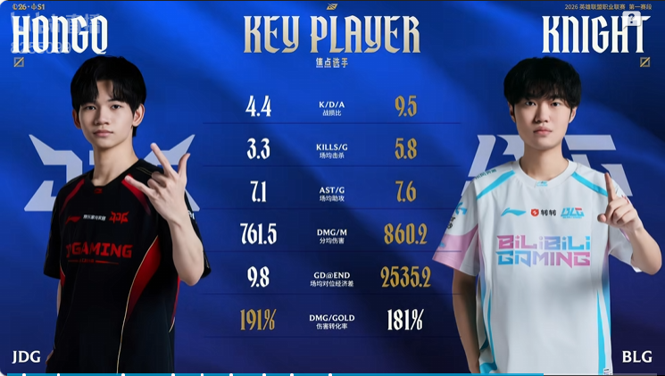 BLG vs JDG中单数据对比:Knight除伤转外全面压制HongQ