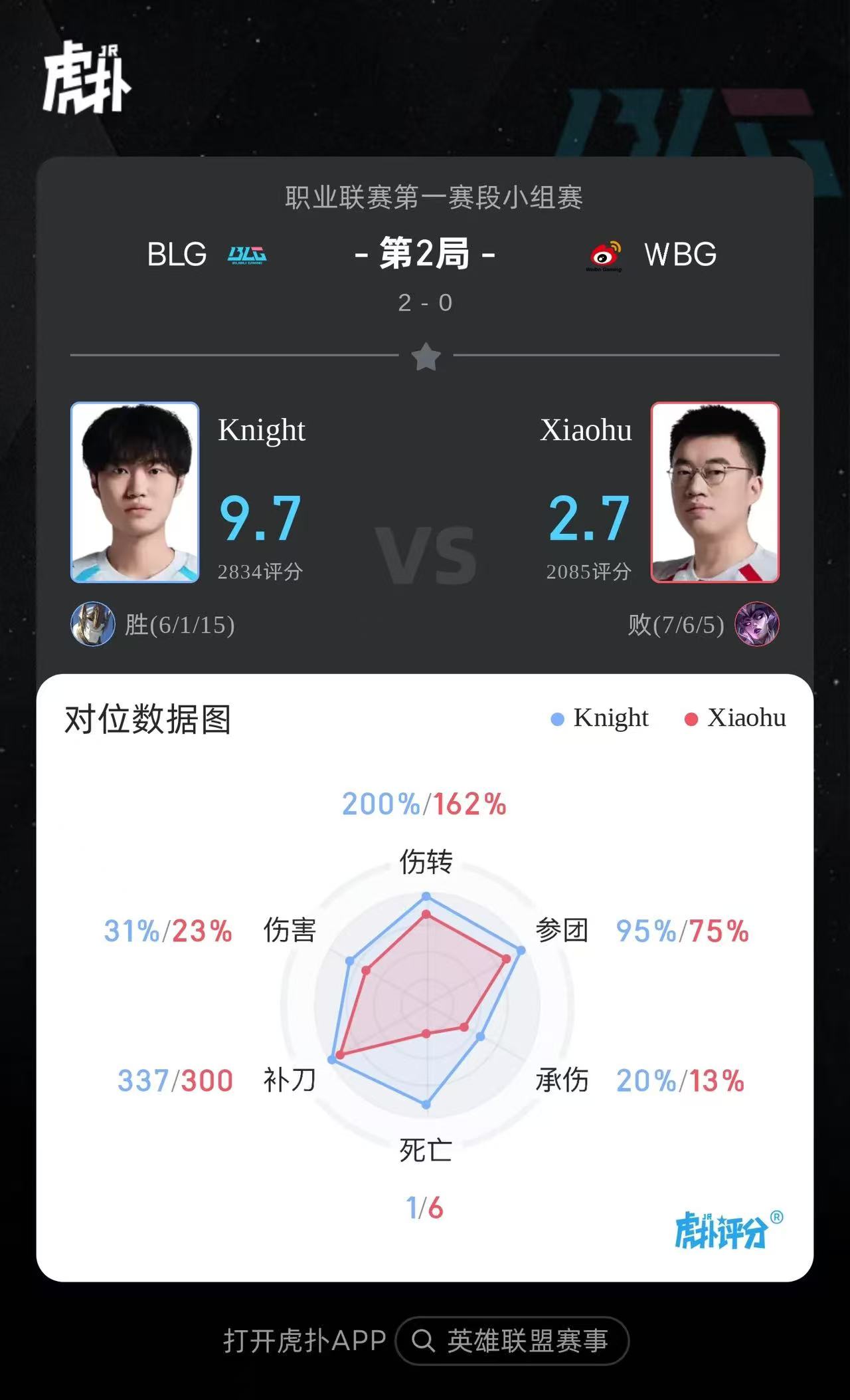Knight加里奥打出6/1/15战绩,斩获BLG对阵WBG第二局MVP