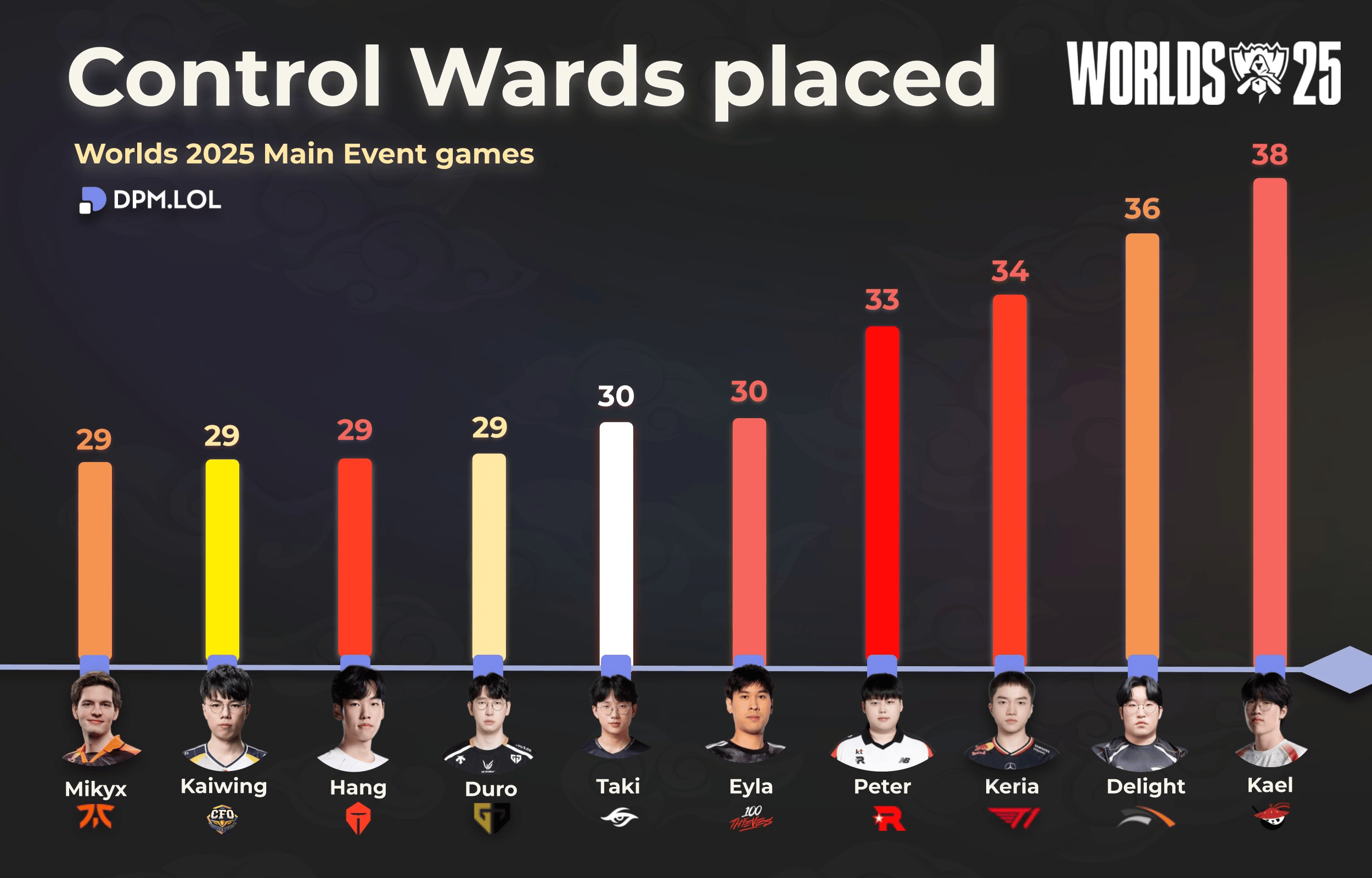 2025全球总决赛目前插眼最多选手:Kael/Delight/Keria前三