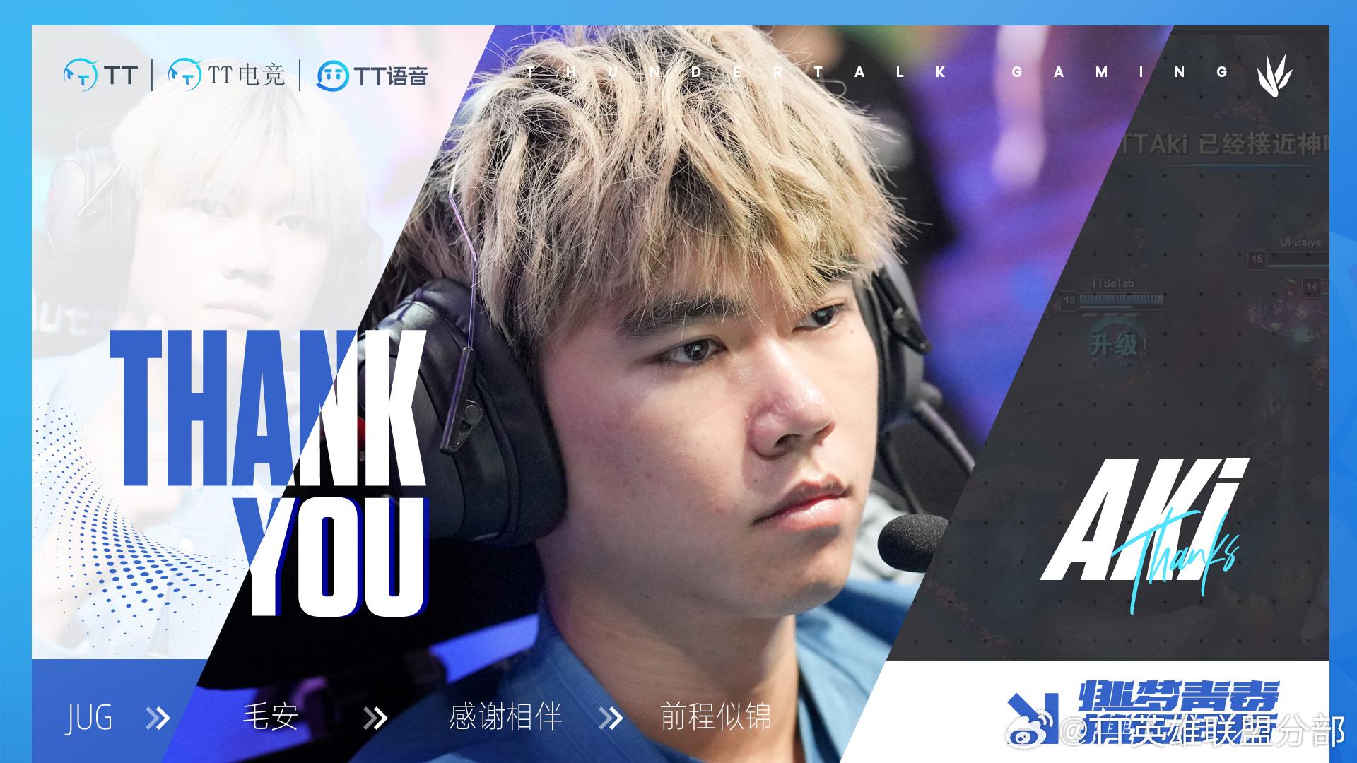 TT官方发布人员变动公告:Aki断开连接,正式离队