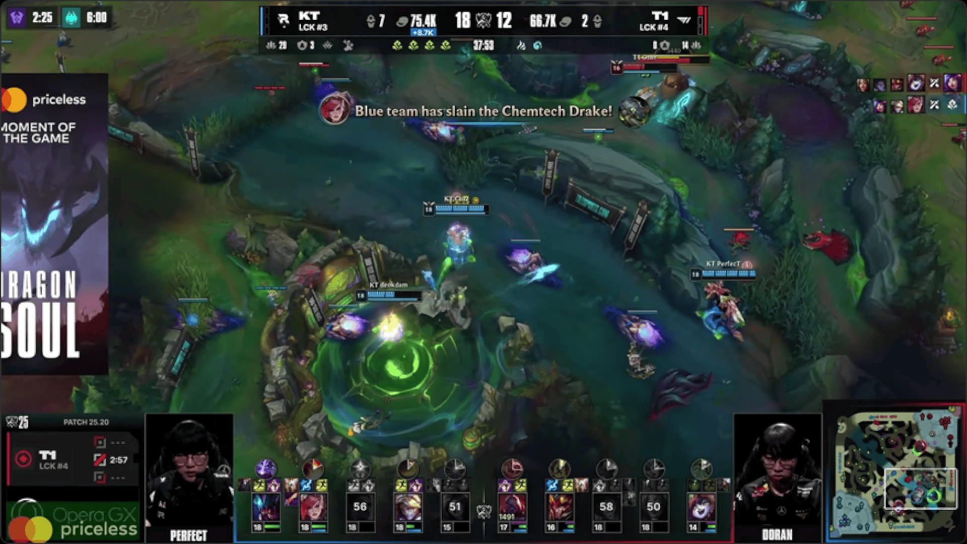 Doran安蓓萨先手开到艾希,T1拿下大龙后大胜KT后一波