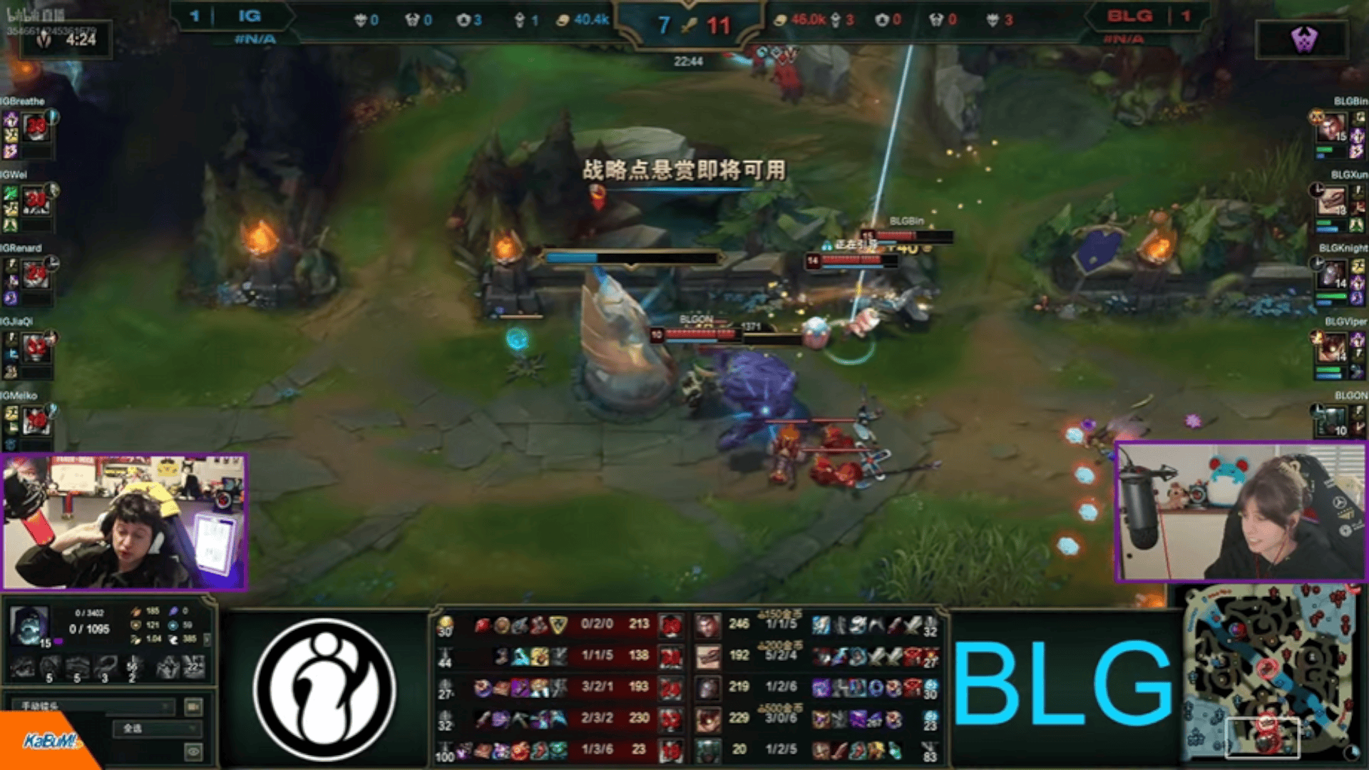 EWC:BLG众人被逐个击破,IG两线出击先后打出1换3