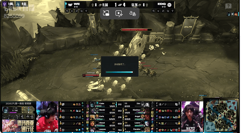 EDG对阵WE比赛的20分钟左右突发暂停