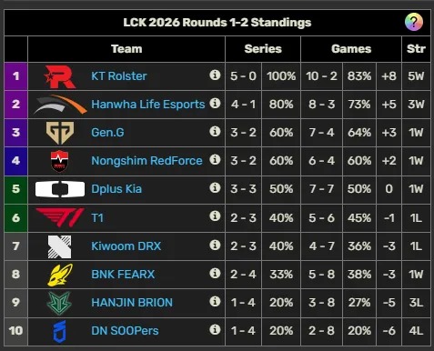 GEN/NS/DK/T1位列三四五六,LCK乱套了?