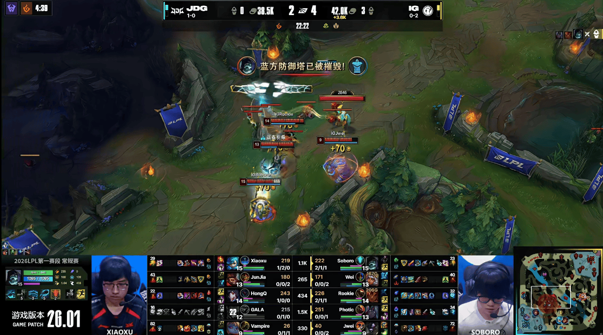 JDG强行拿下小龙,但随后IG击杀GALA并连拆两座中塔