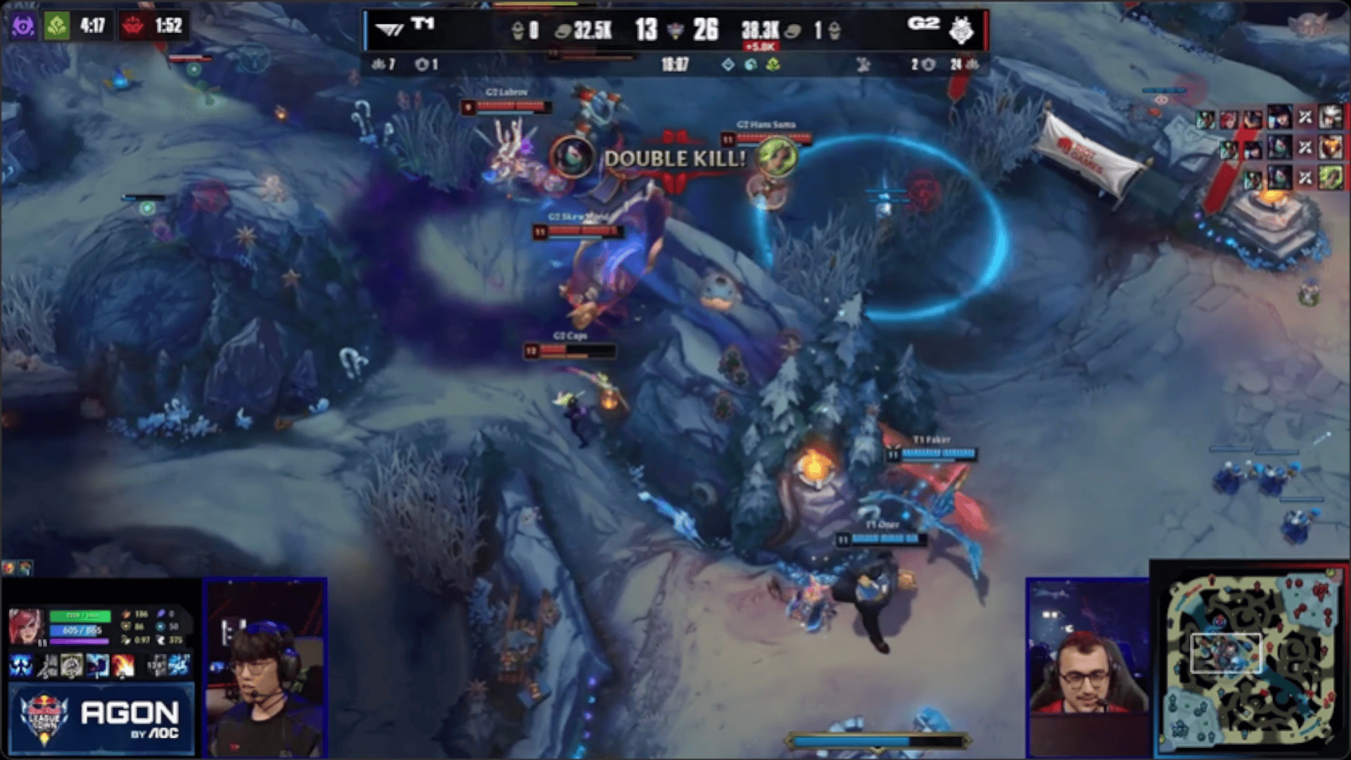 Caps阿卡丽开秀豪取双杀,G2打出0换3大胜T1拿到先锋
