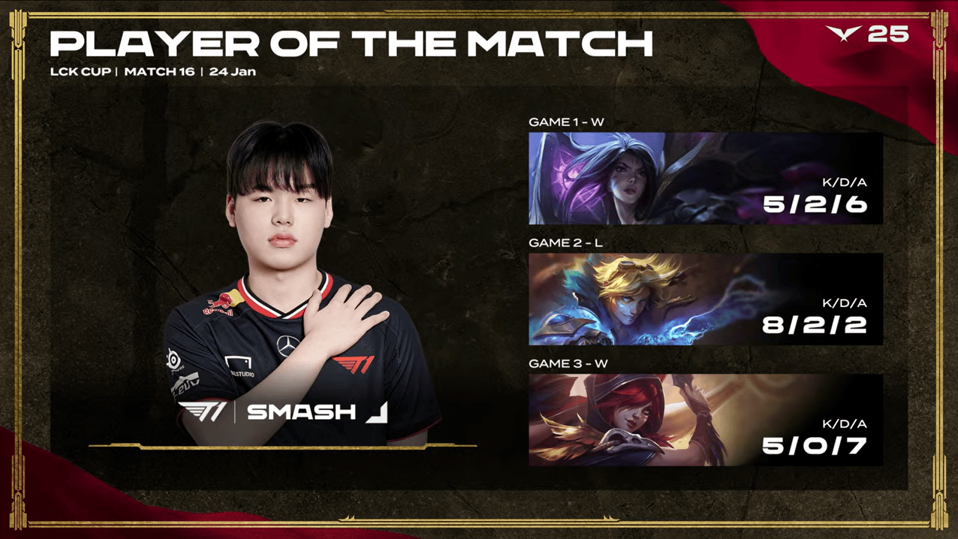 Smash三局砍下18/4/15的战绩,拿下T1对阵KT系列赛MVP