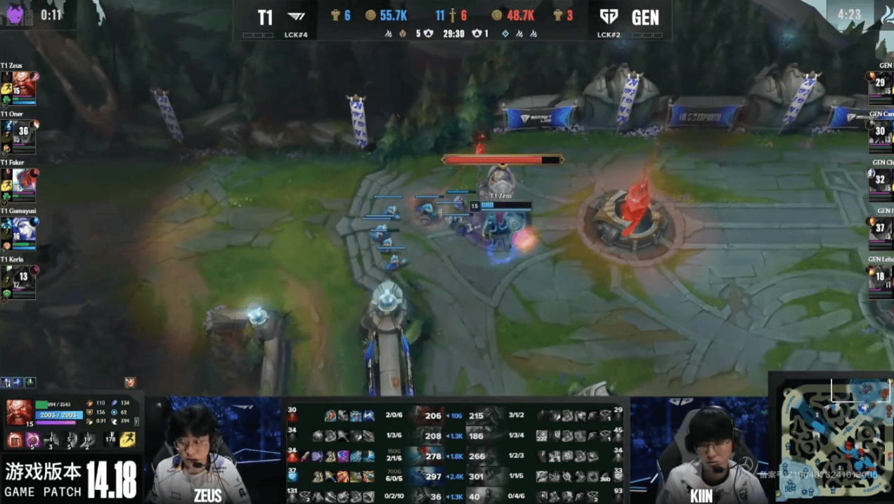 GEN一级细节布置,成功五人击杀Zeus人头让给伊泽瑞尔