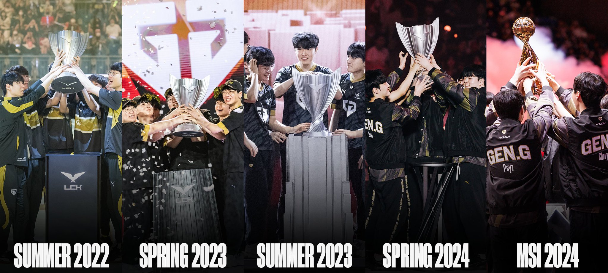 LOL官推分享2022以来GEN斩获4联赛冠军,1 MSI冠军:新一代