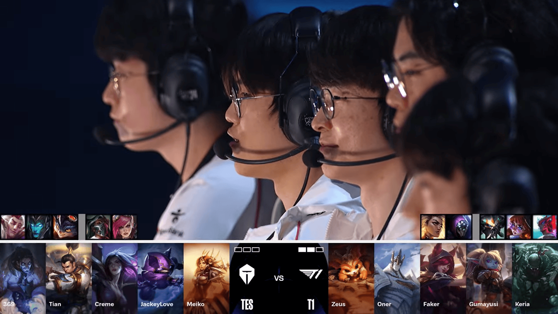 T1对阵TES第三局:Keria末选派克!Faker加里奥Zeus一选纳尔