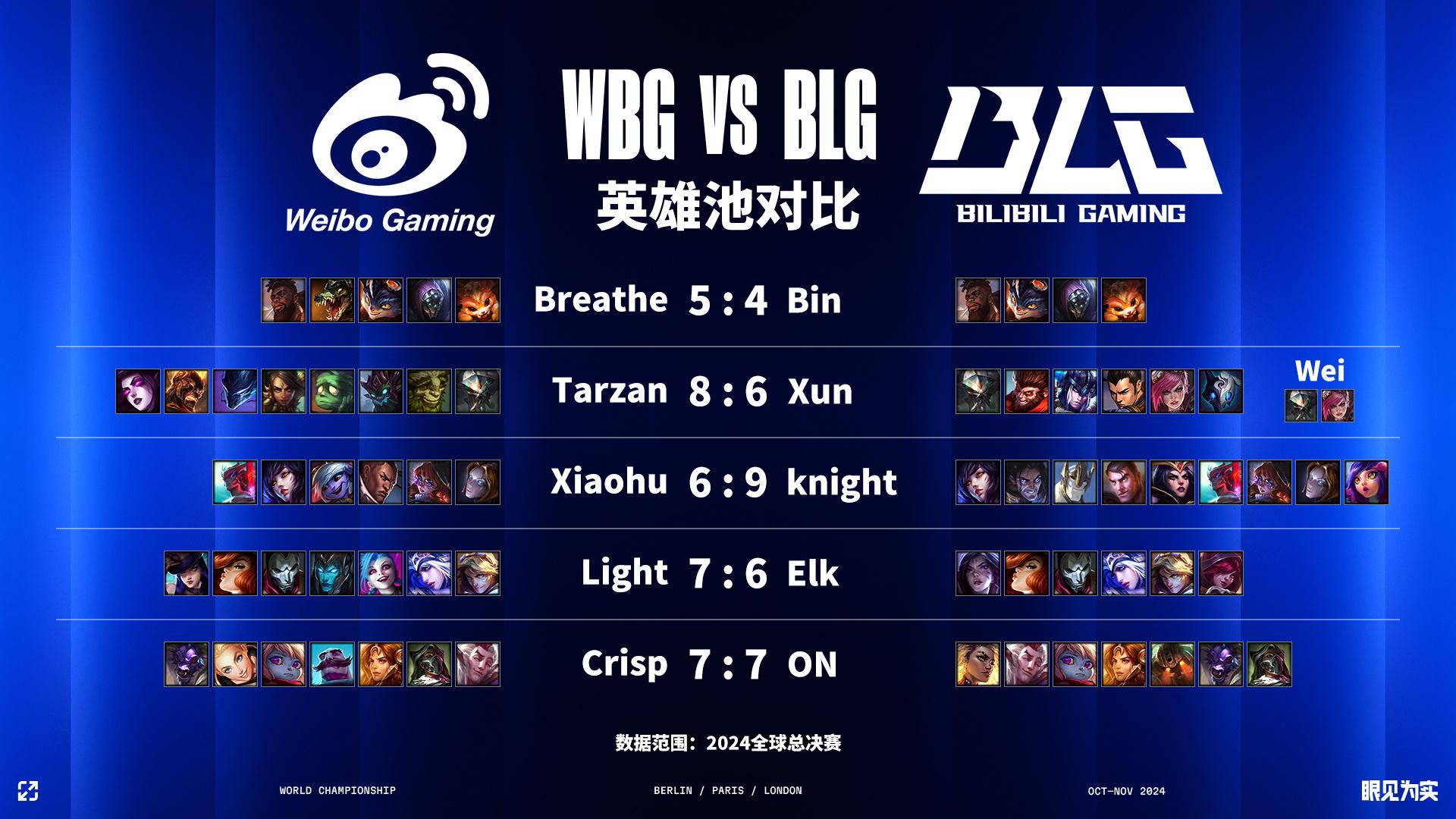WBG&BLG全球总决赛英雄池对比:knight选出9个不同英雄