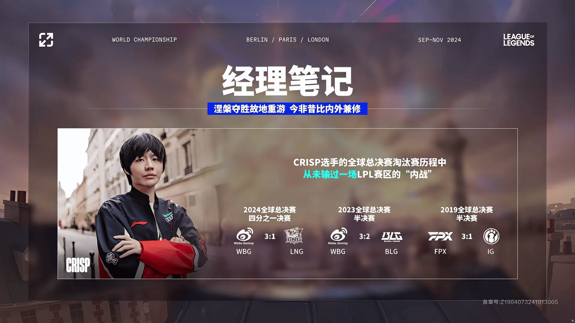 没意外!Crisp在全球总决赛淘汰赛中从未输过LPL内战