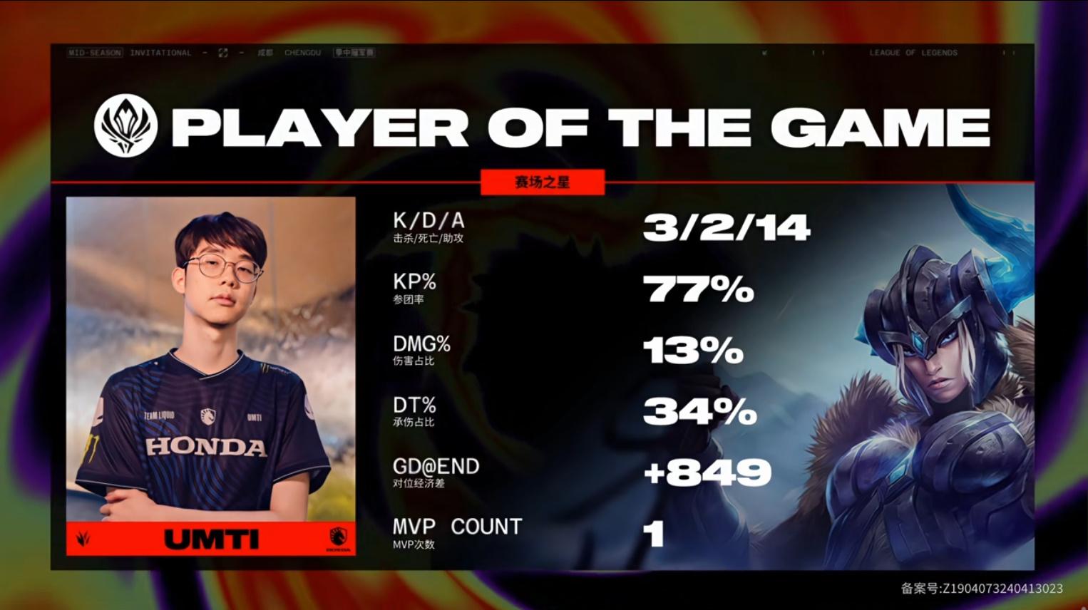 UmTi猪妹砍下3/2/14战绩,拿到FNC对战TL第一局MVP