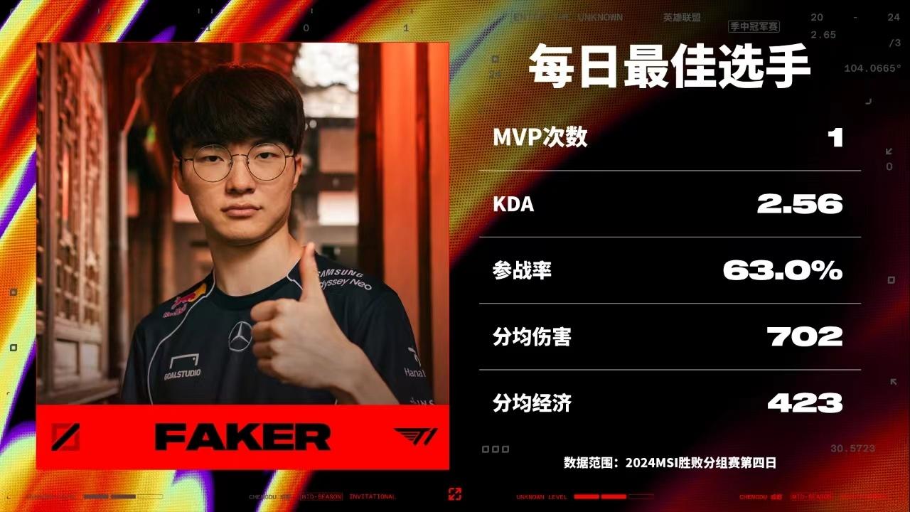 MSI胜败分组赛第四日最佳选手:T1.Faker