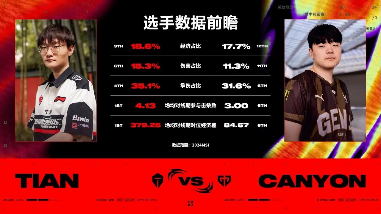 TES vs GEN数据前瞻:Tian和Canyon两人的发挥至关重要