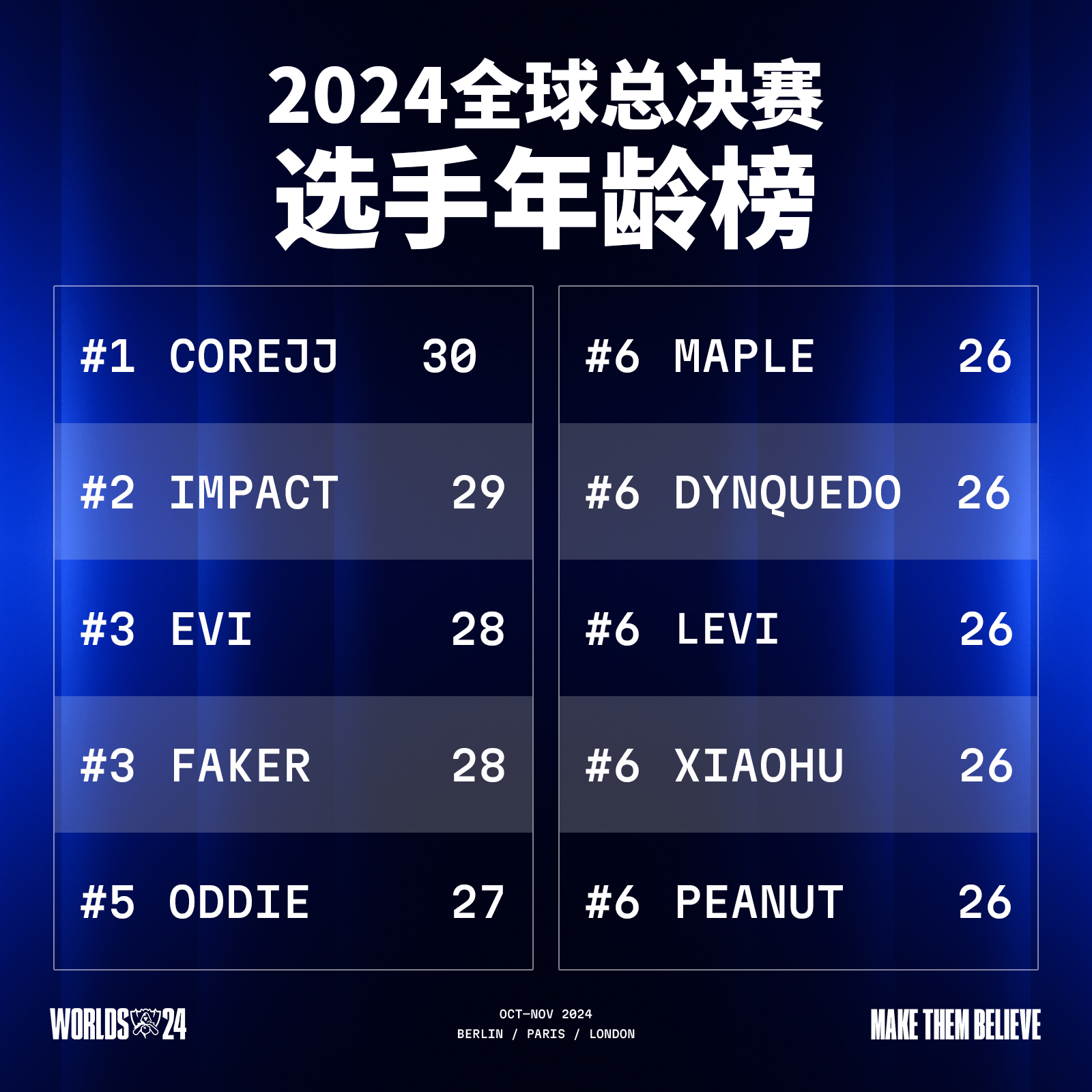 2024全球总决赛选手年龄榜:CoreJJ以30岁位列第一