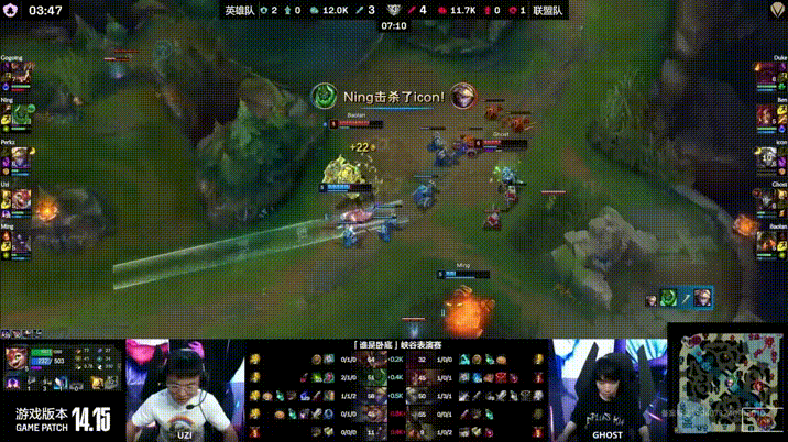Uzi还在输出但杀不死人,Ghost烬三杀联盟队团灭英雄队