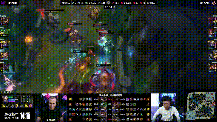 表演赛:双方上路爆发团战,联盟队1换3拿下大龙