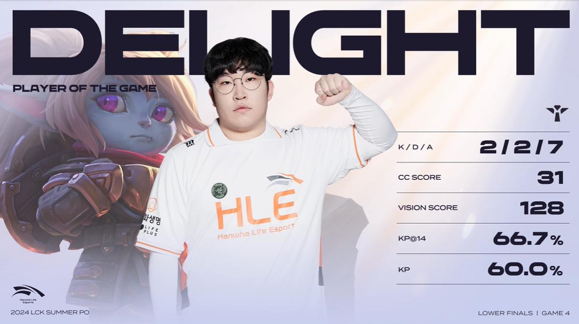Delight使用波比打出2/2/7的战绩,拿到HLE对战T1决胜局MVP