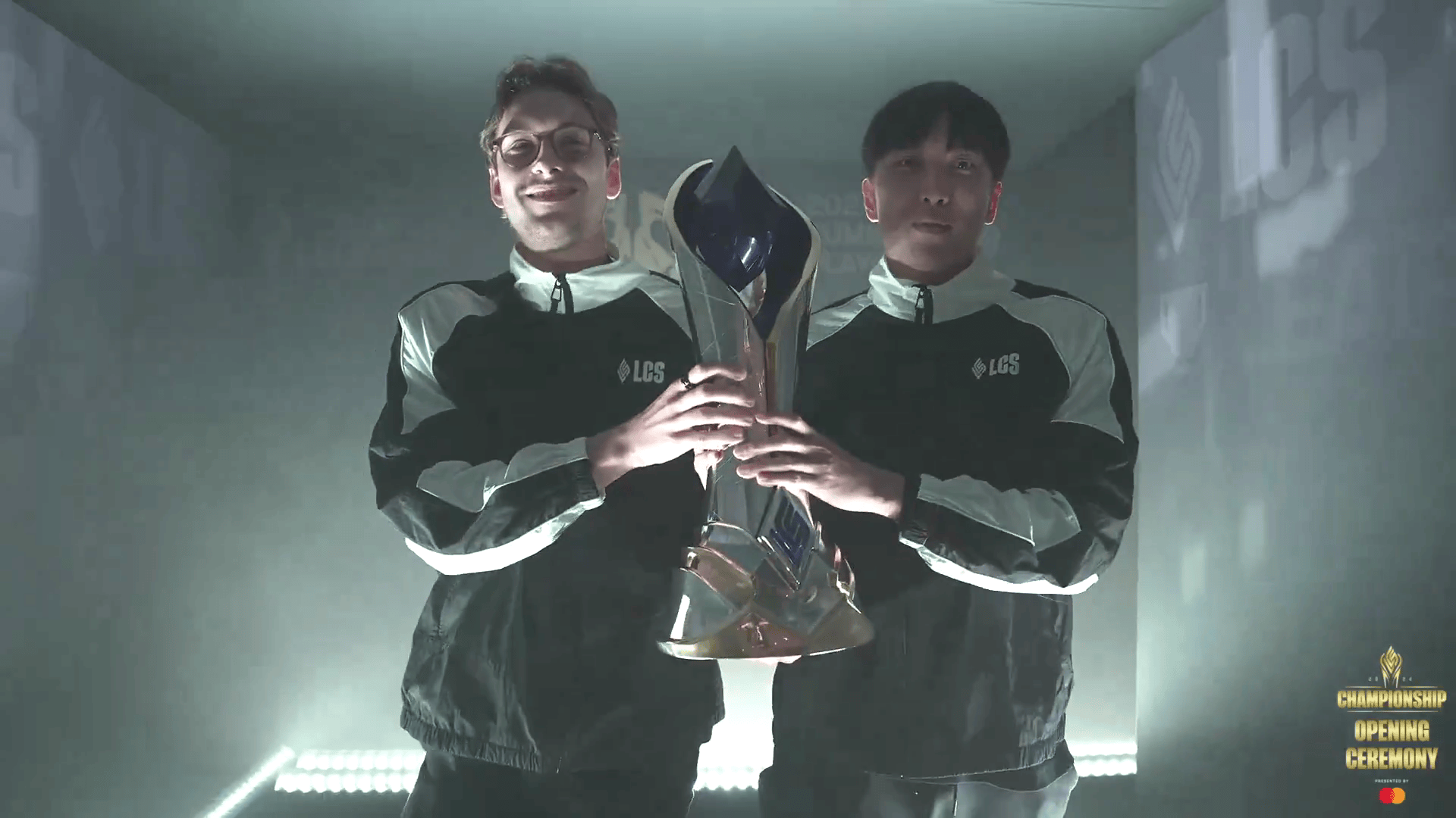 LCS决赛开幕式:众多老选手老解说回归,比尔森和大师兄手捧冠军奖杯登场