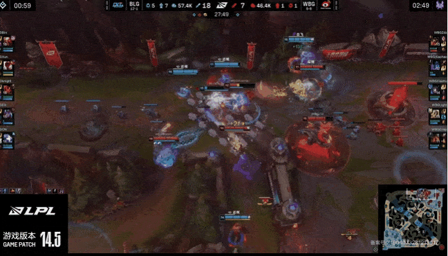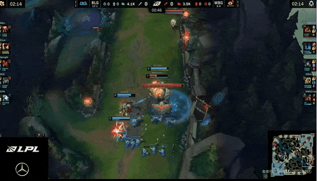 LPL:BLG无视野tp绕后击杀对方下野辅三人