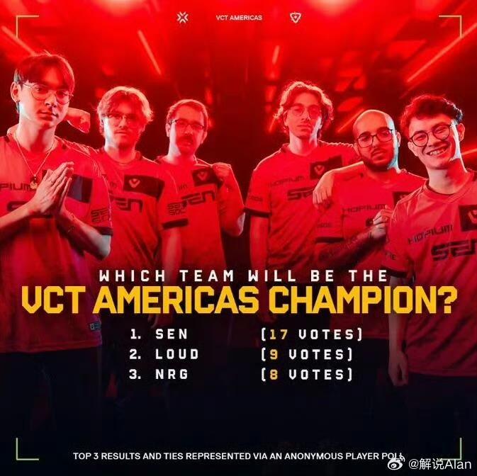 无畏契约美洲赛区选手匿名投票:SEN最被看好夺冠