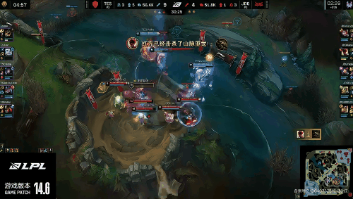 LPL:JackeyLove团战伤害拉满拿下四杀,TES团战大胜