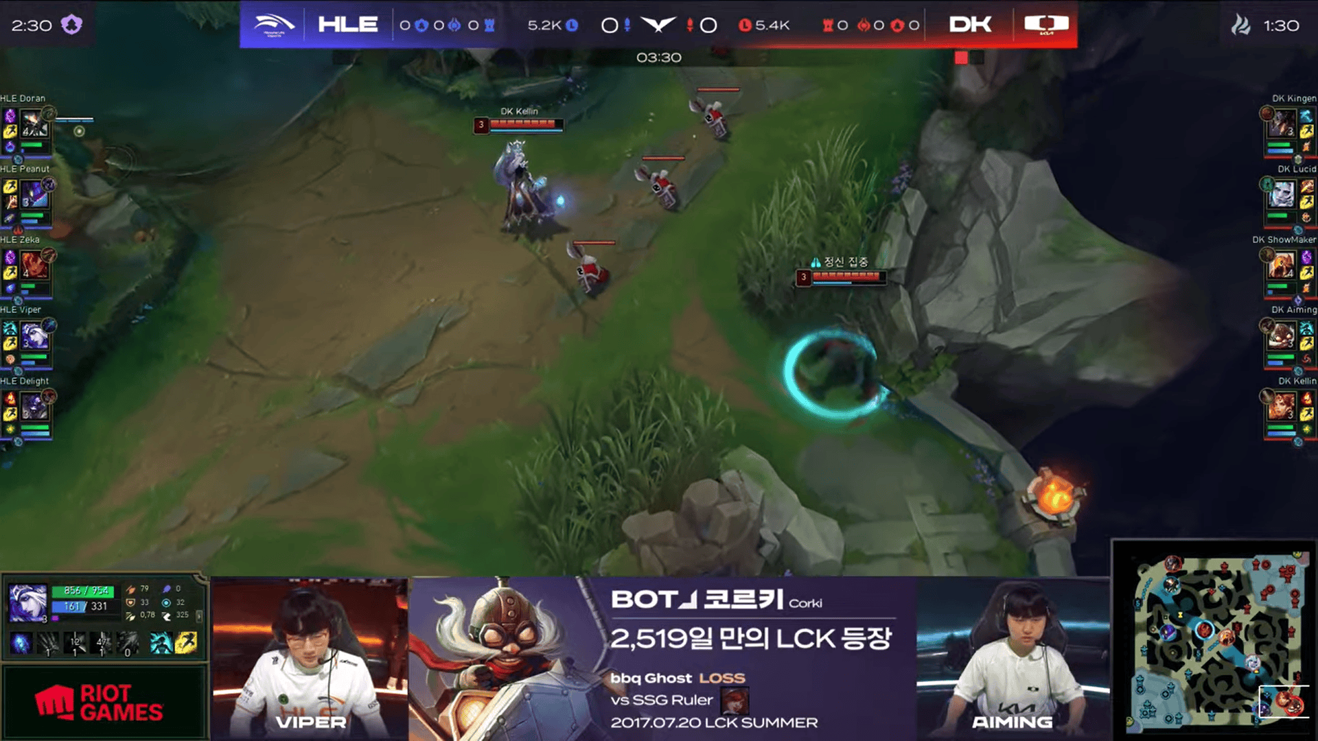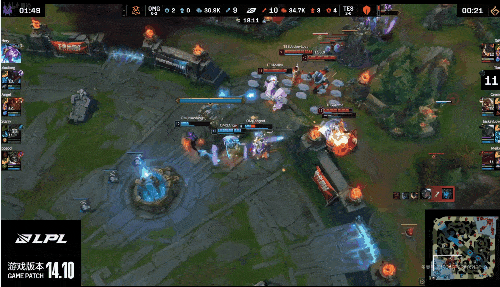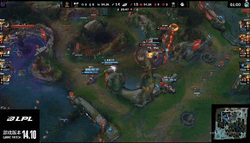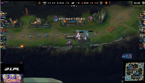 LPL:双方在野区遭遇开战,最终完成中辅互换