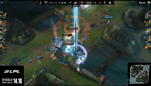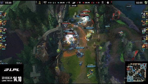 LPL:NIP下路五包一收掉奎桑提后,TP过来的鳄鱼也被击杀