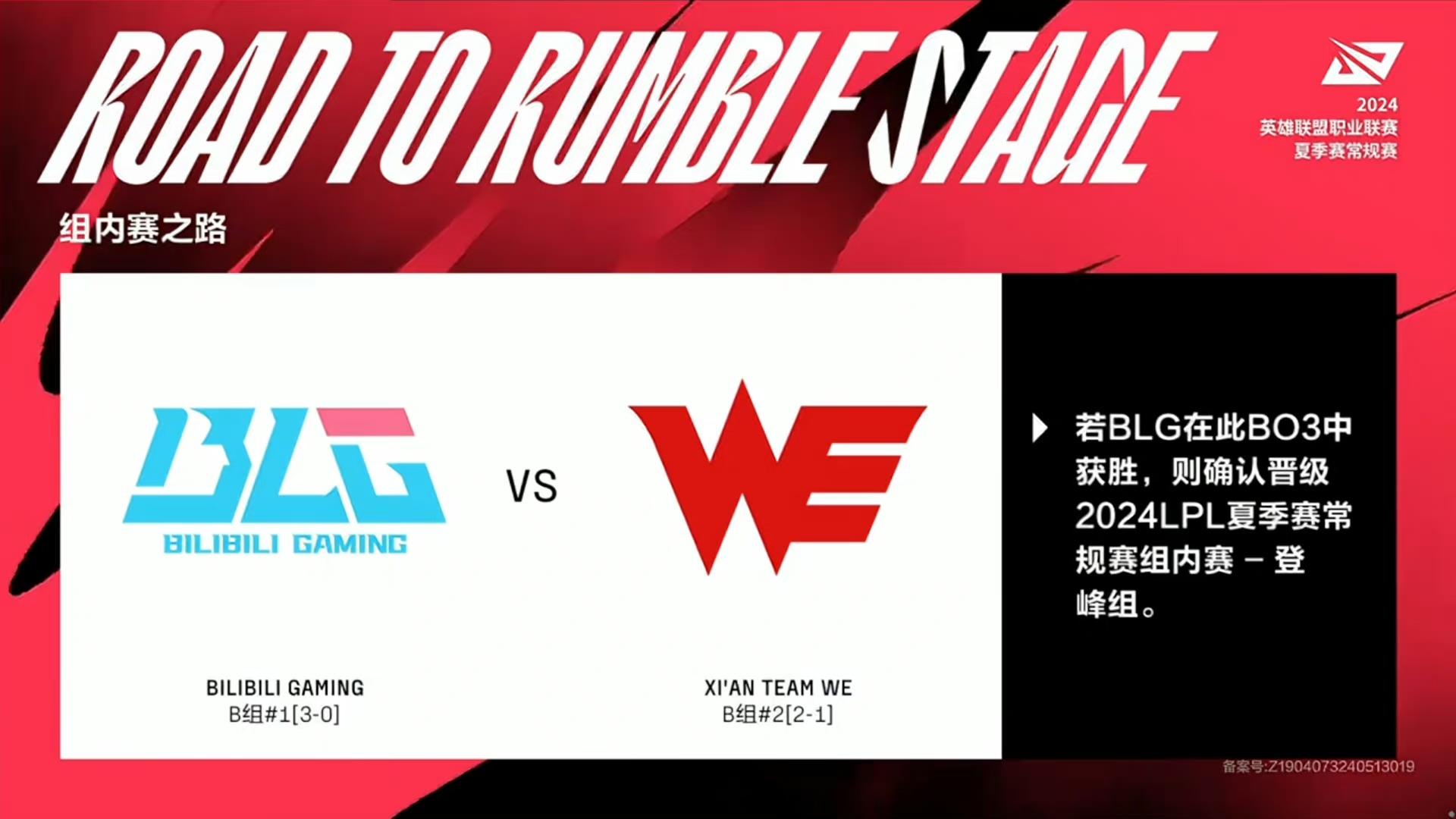 若BLG在此BO3中战胜WE,则确认晋级组内赛登峰组