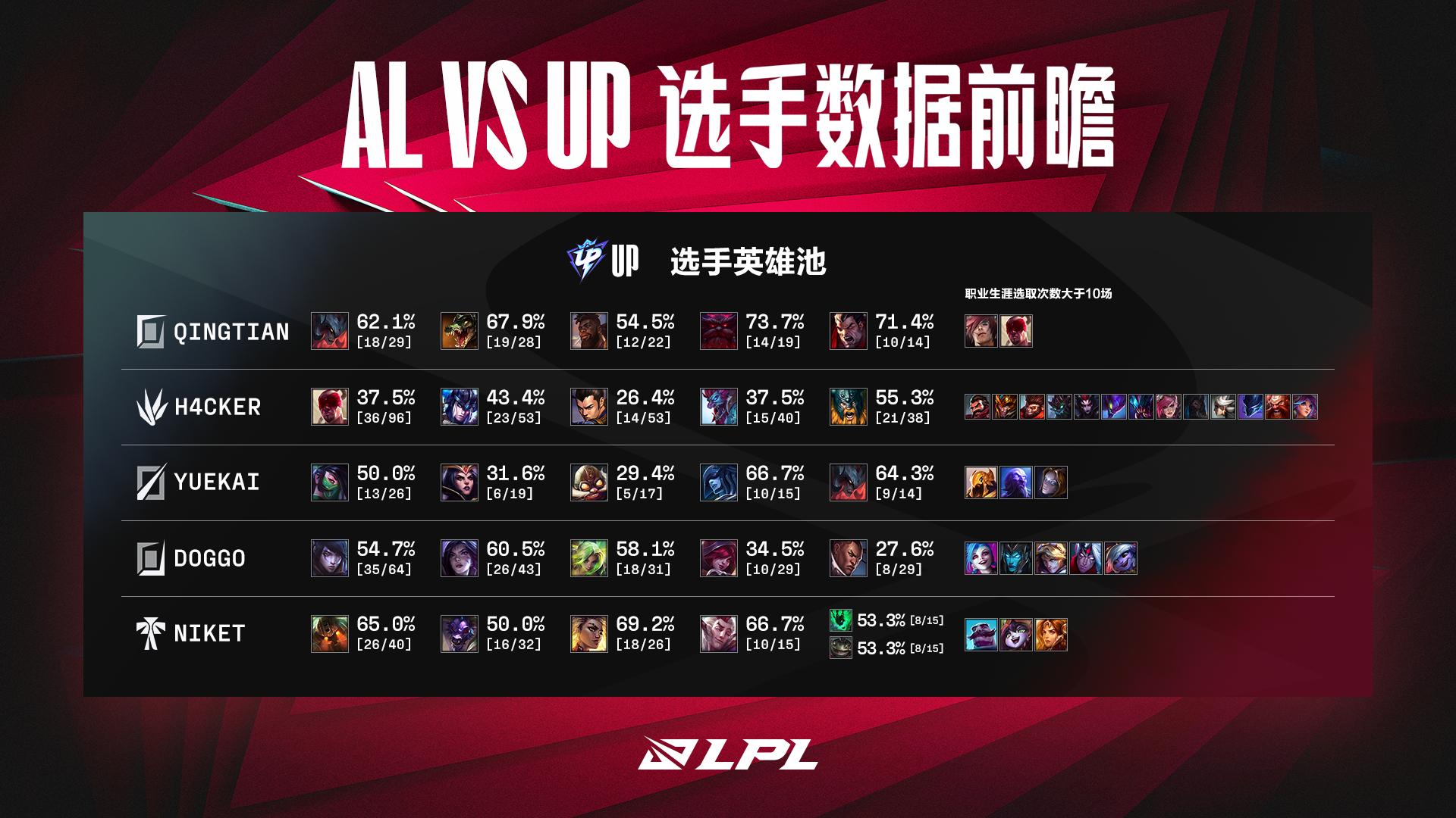 AL vs UP英雄池前瞻:双方上路Ale和Qingtian的碰撞是看点