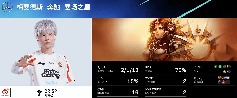 Crisp蕾欧娜打出2/1/13战绩,拿下WBG对阵LGD第一局MVP