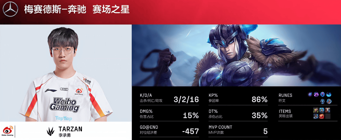 Tarzan猪妹打出3/2/16战绩,拿下WBG对阵JDG第一局MVP