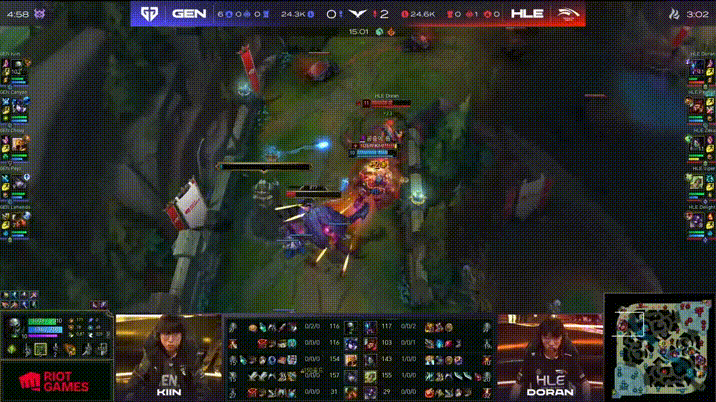 LCK:Kiin奎桑提关键大招带走剑魔,GEN劣势大龙团打成2换2