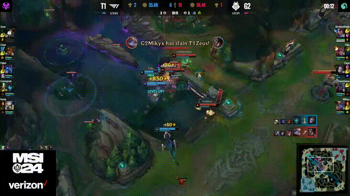 G2辅助Mikyx蕾欧娜一分钟死两次,开局10分钟怒砍0/4