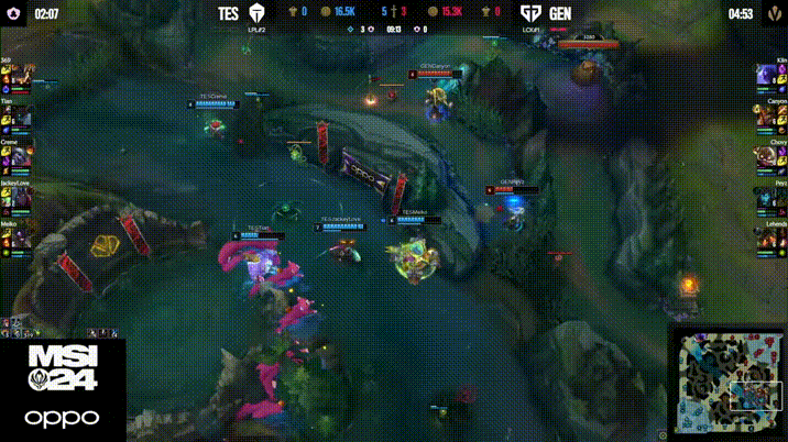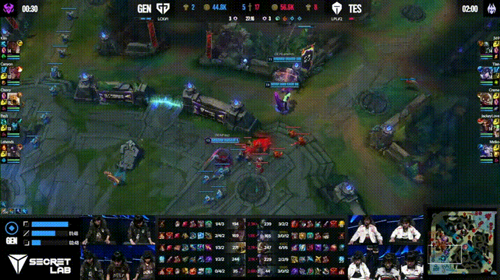 TES强抓下路被GEN反打一波1换2,Canyon豹女拿下双杀