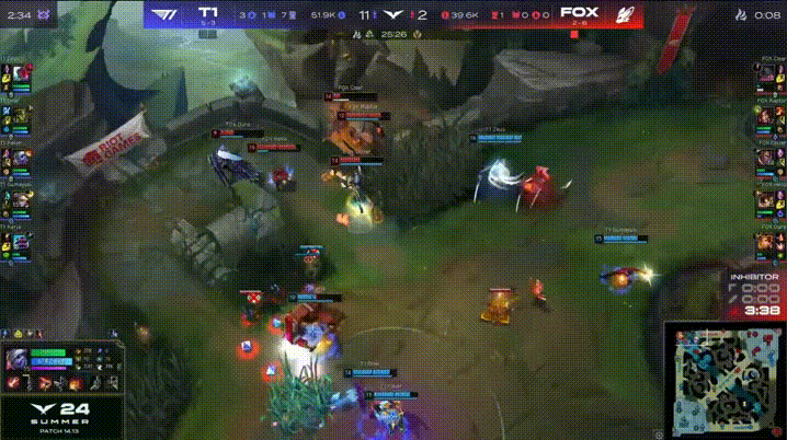 LCK:好起来了!T1中辅残血拉扯河道0换2击杀FOX野辅