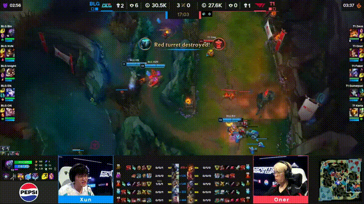 T1 2-1 BLG:完美团战强势逆转,T1决胜局翻盘BLG挺进四强
