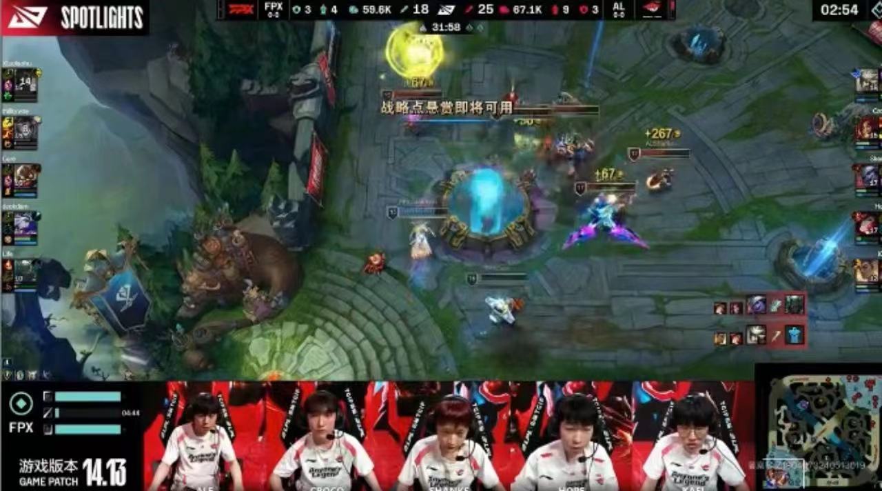 AL对战FPX首局高光:奎桑提频繁找机会,小炮输出拉满,AL逆转拿下首局
